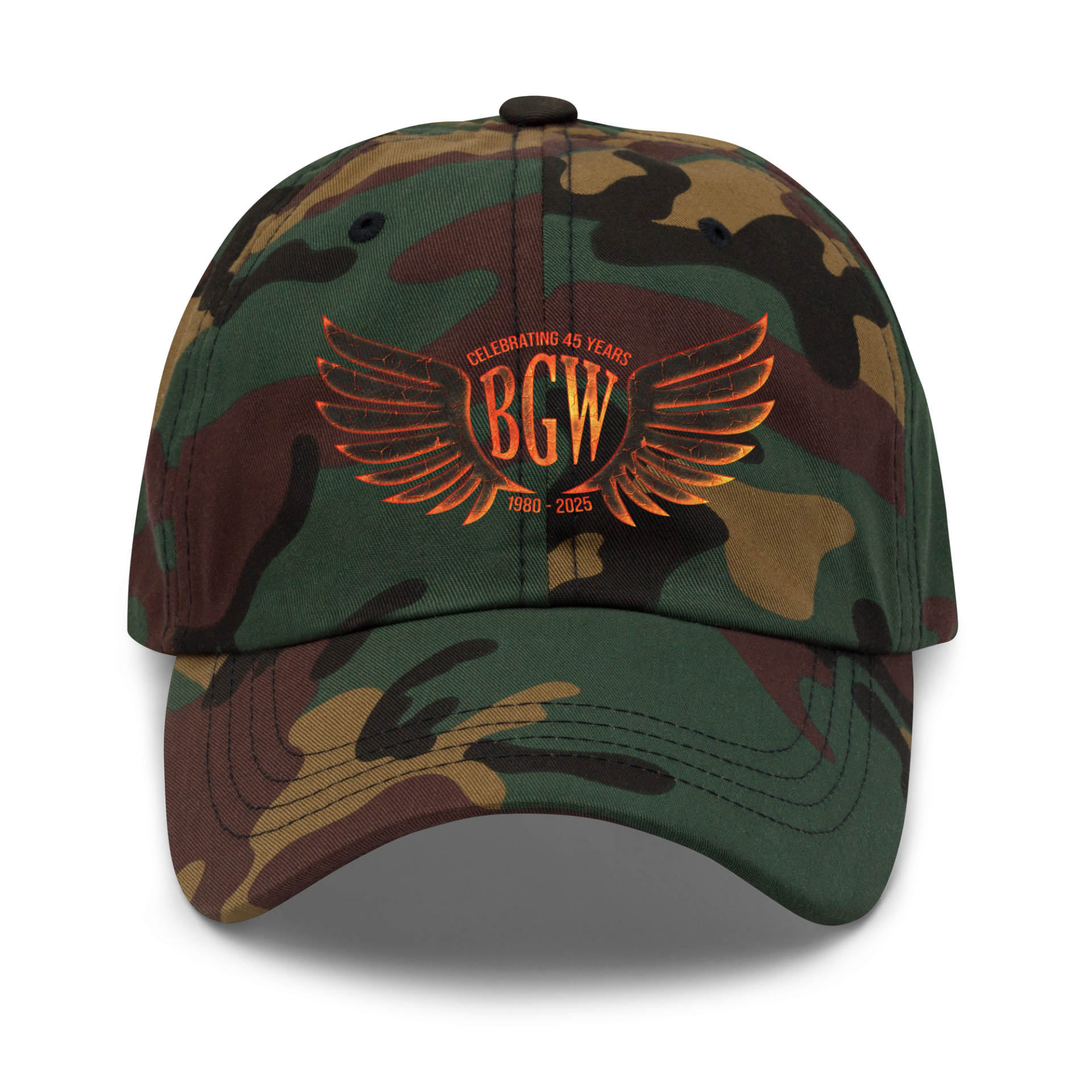Celebrating 45 years of musical brilliance, this commemorative headgear comes in multiple styles and fits perfectly with just about anything.